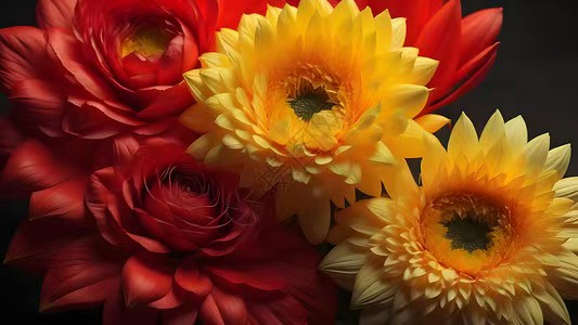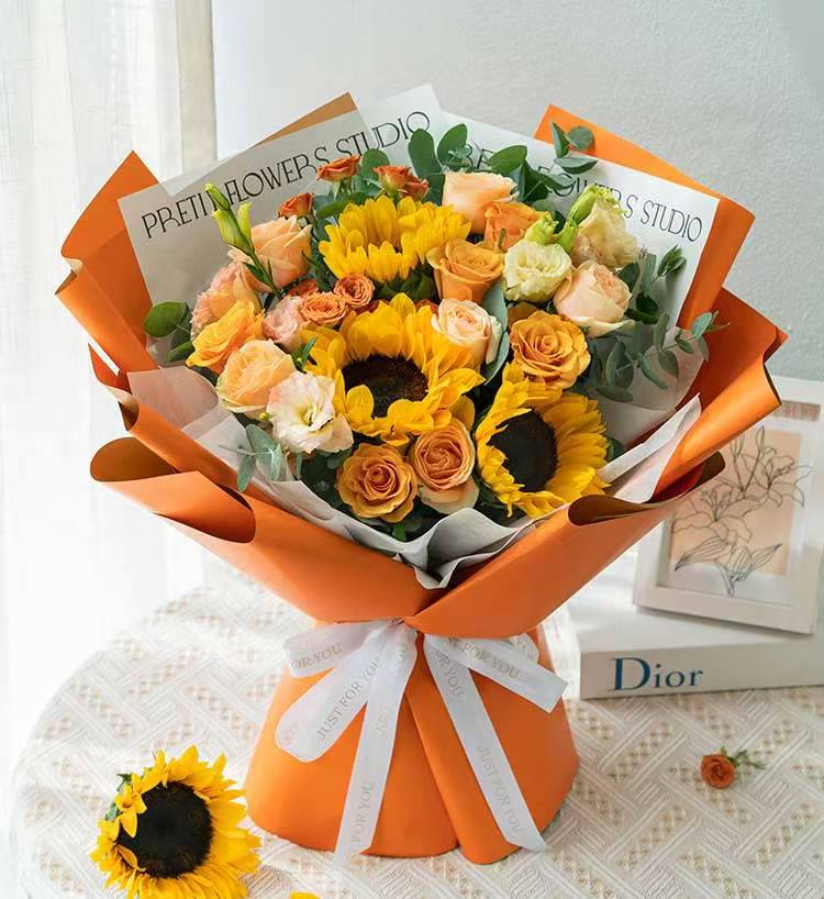 向日葵+洋甘菊+尤加利明亮暖调正面全景