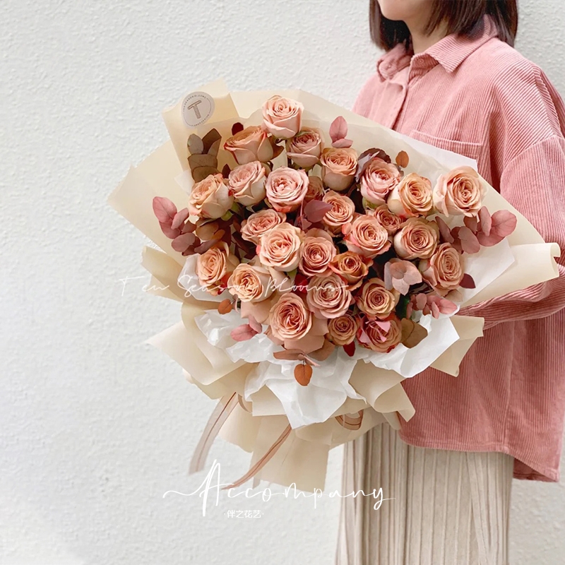 复古棕调玫瑰牛皮纸包装细节特写花瓣质感