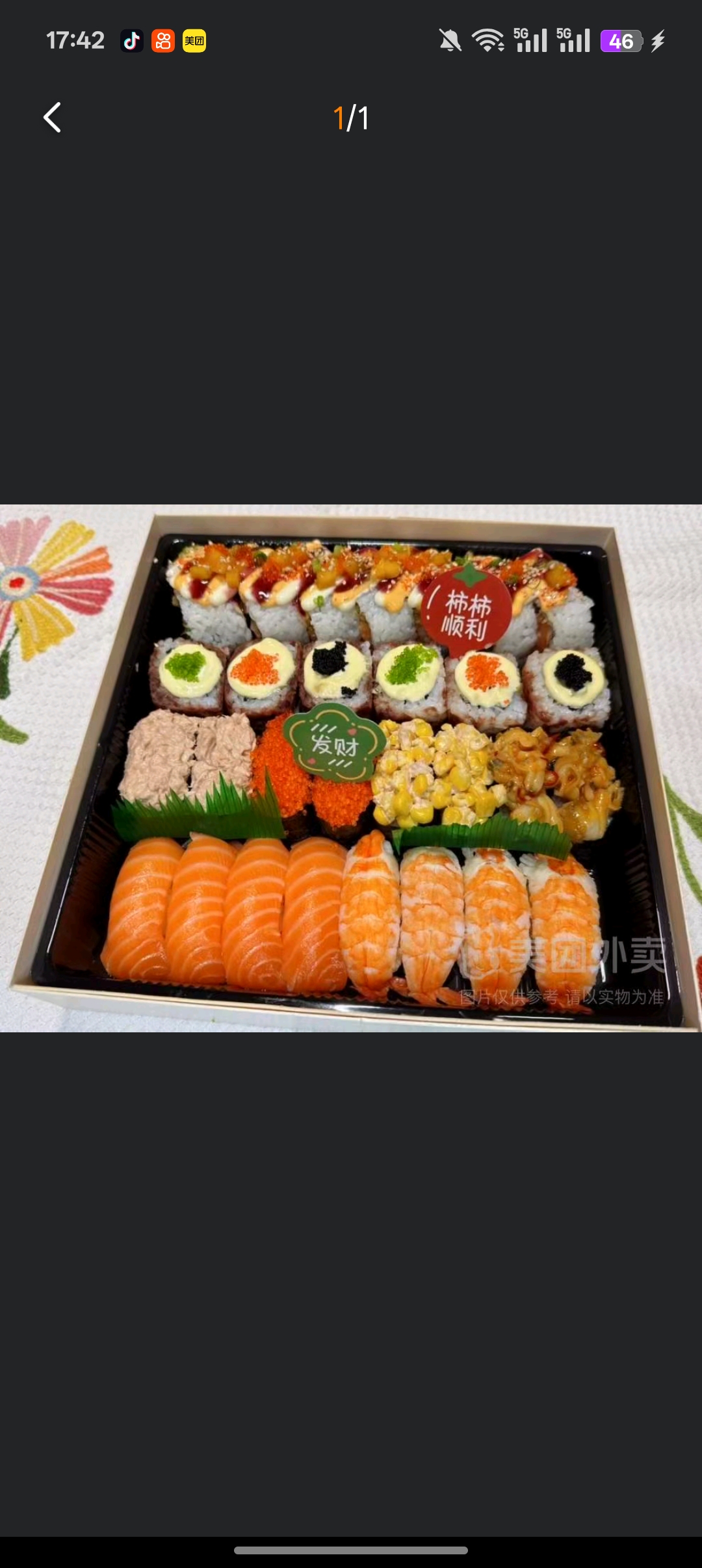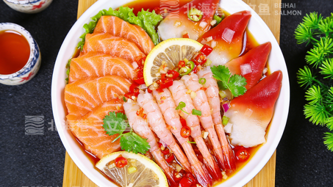 70g还有三文鱼,4片北极贝,10只小甜虾