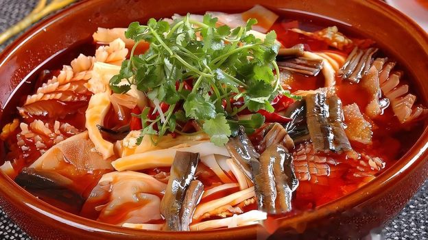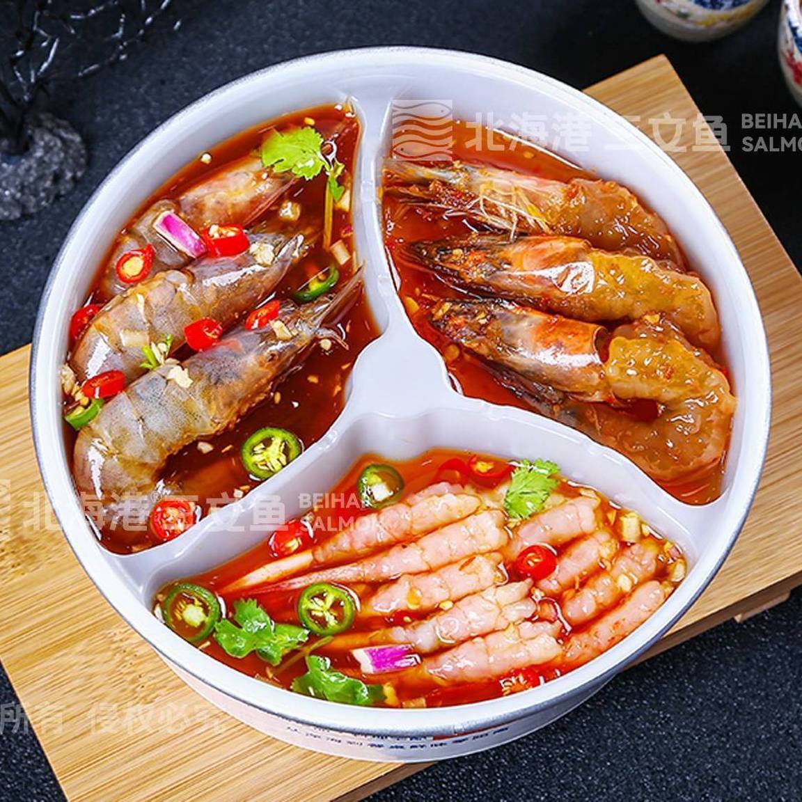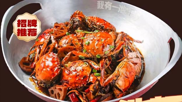 里面有大闸蟹,龙虾,鱼肉,虾,扇贝,鲍鱼口味香辣